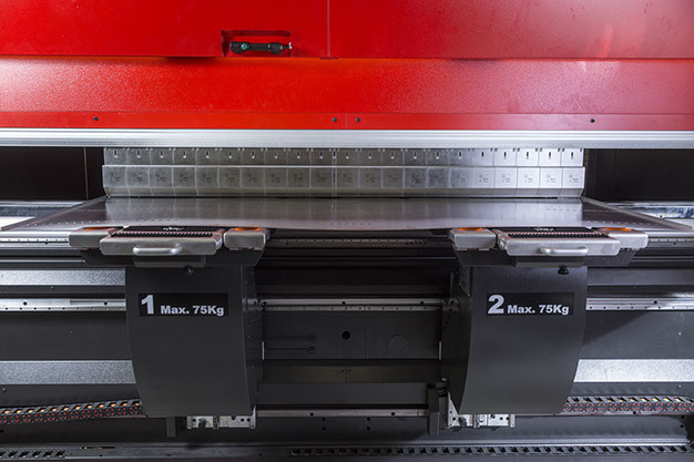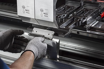 Der automatische Werkzeugwechsler verkürzt die Rüstzeit drastisch. Im Vergleich zu konventionellen Anlagen verkürzt sich die Rüstzeit auf ein bis drei Minuten. Damit eignet sich die HG-2204 ATC perfekt für komplexe Bauteile in Losgrößen ab Stückzahl eins mit entsprechend häufigen Werkzeugwechseln. Per Knopfdruck kann in höchster Präzision und Reproduzierbarkeit das Abkanten beginnen – manuell, halb- oder vollautomatisch.