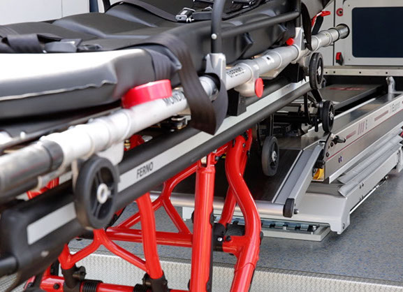 Er sorgt für sicheren und schonenden Patiententransport. In Verbindung mit den Power-Load-Systemen benötigen die Rettungsassistenten keinerlei körperliche Anstrengung.